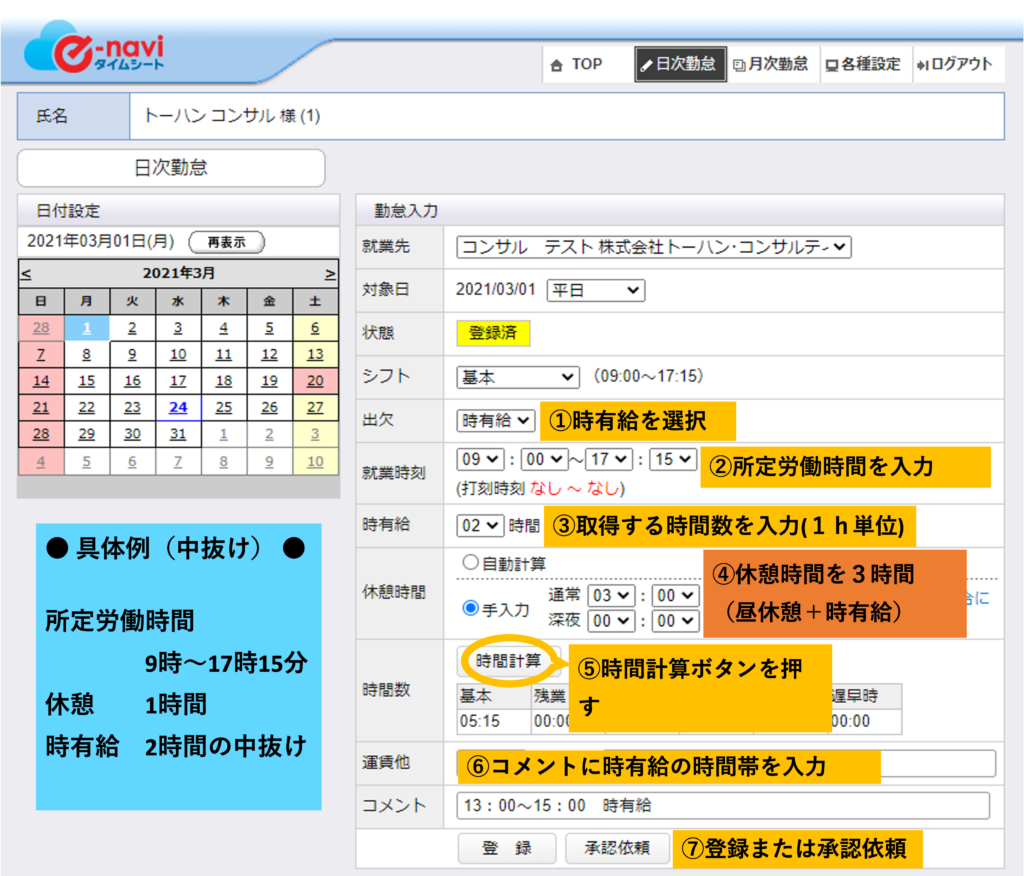 7.時間単位の年次有給休暇 WEB勤怠の入力方法