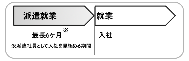正社員(または契約社員)への雇用を前提に、派遣スタッフとして一定期間(最長6ヶ月)勤務し、あなたと派遣先双方の意思を確認。
